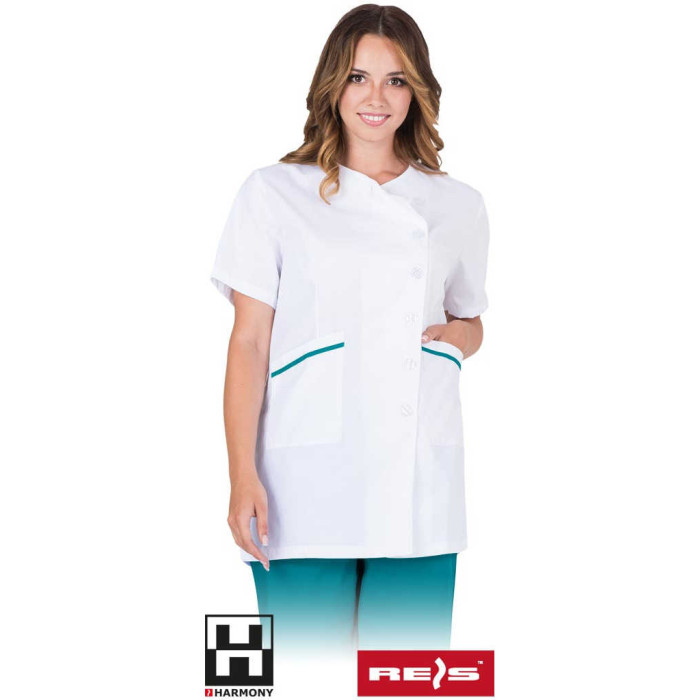 BLUZA ROBOCZA REIS HARMONY NONA-J Z KRÓTKIM RĘKAWEM BIAŁO-ZIELONY TEAL